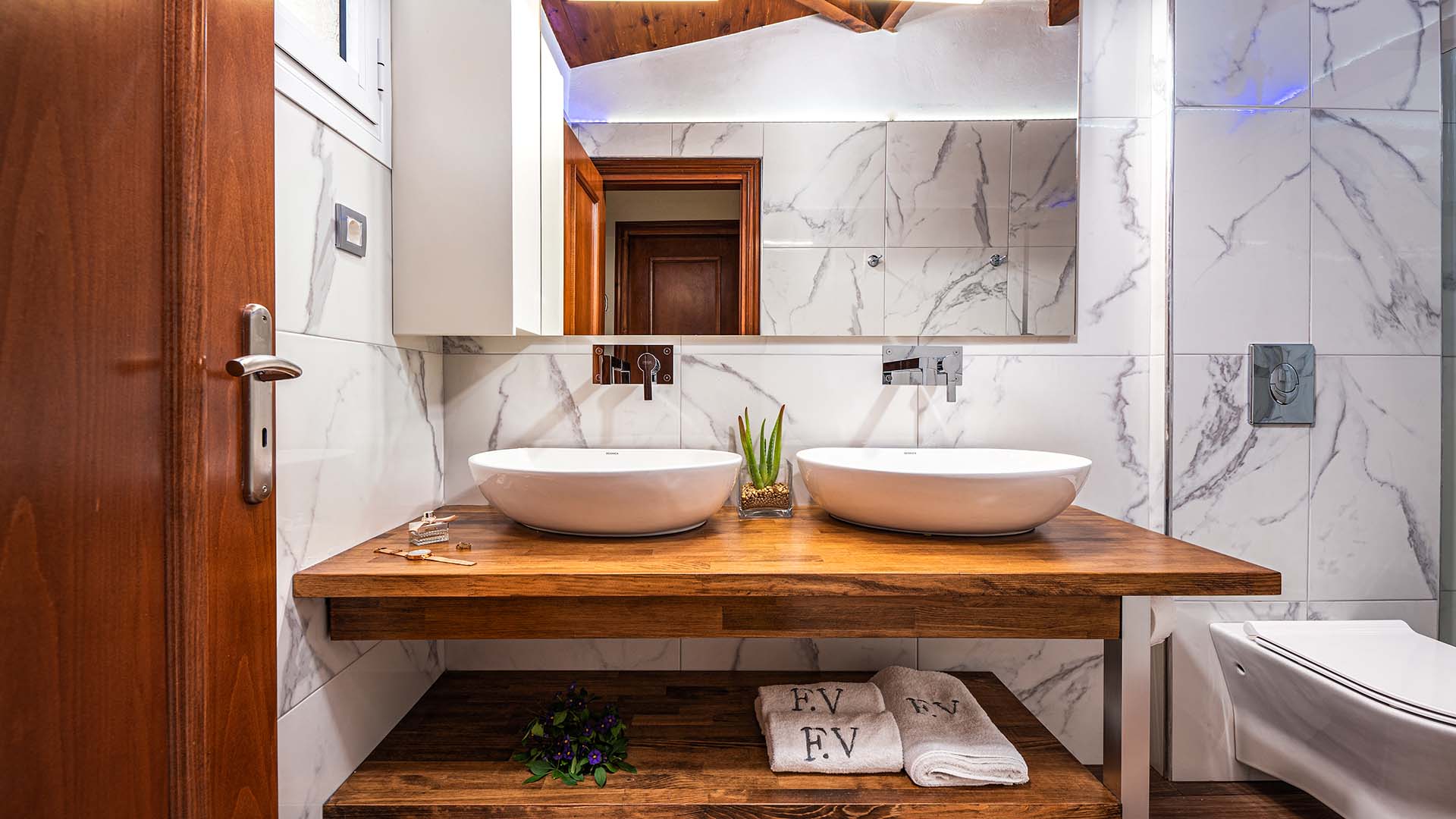 Fiorentinos villa consists of two separate buildings: a two bedroom main villa and an open plan guesthouse right next to it. Both of them are available as one accommodation and can accommodate 2-8 guests.